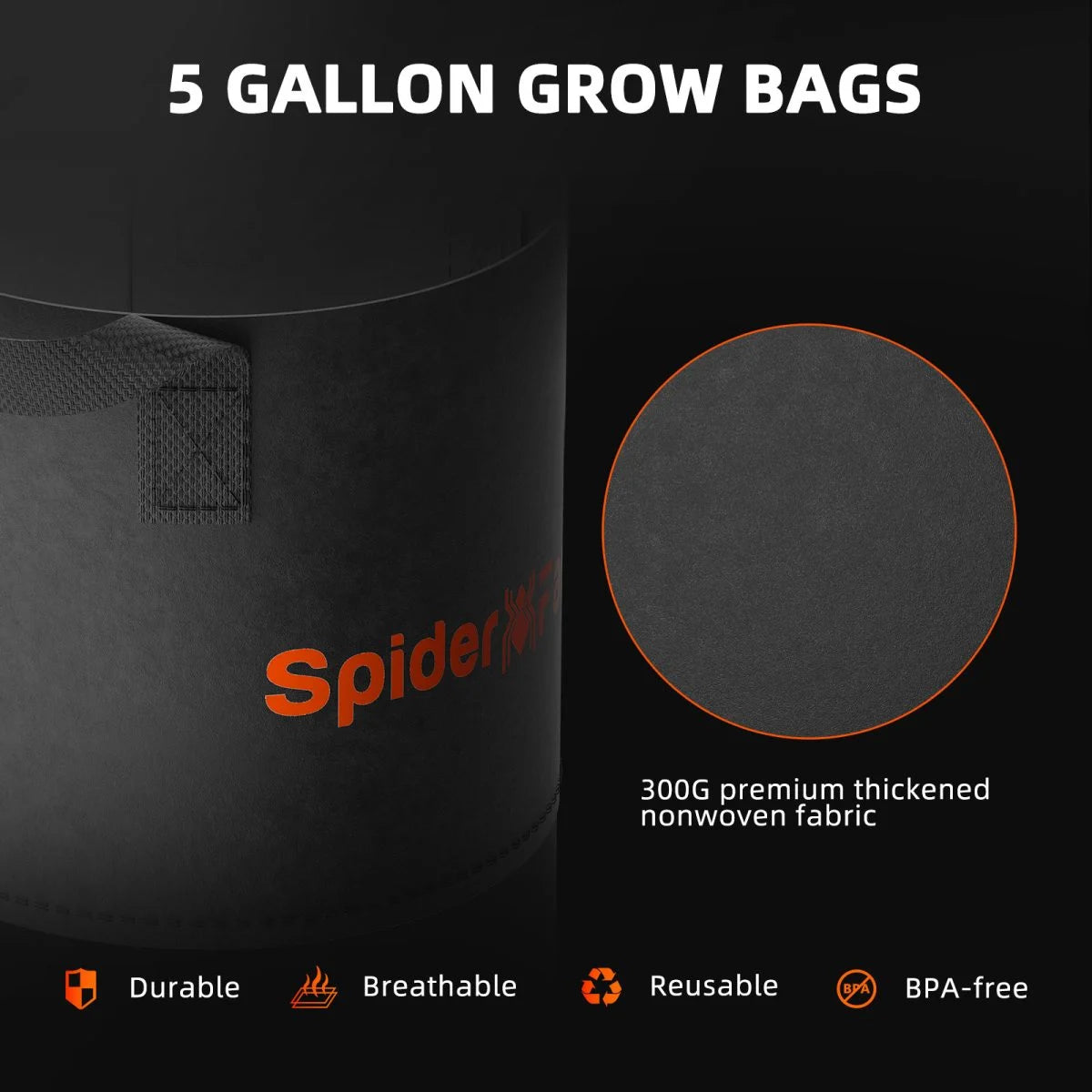 1 × SF4000 450W Full Spectrum Samsung lm301H EVO LED Grow Light, 2 × Light Hanging Ropes, 2 × Metal Hanging Kits, 1 × 4′ x 4′ x 6.5′ (120x120x200 cm) Grow Tent, 1 × high-quality reusable Trellis Plant Netting, 39.4″ x 39.4″ (100 x 100 cm) with 10×10 cm squares (unstretched), 1 × 6” Clip Fan, 1 × 6” Inline Duct Fan, 1 × Fan Speed Controller, 1 × 6” Carbon Filter, 1 × Pre-filter, 1 × Flex Air Aluminum Ducting, 3 × Hose Clamps for connecting and securing fan and ducting, 1 × Thermometer and Hygrometer, 1 × Timer, 6 × 5 Gallon Grow Bags, 2 × Corner Shelves, 2 × Duct Filter Vent Covers to prevent dust and pests and prolong fan life, 2 × Magic Straps, 2 × Regular Straps.